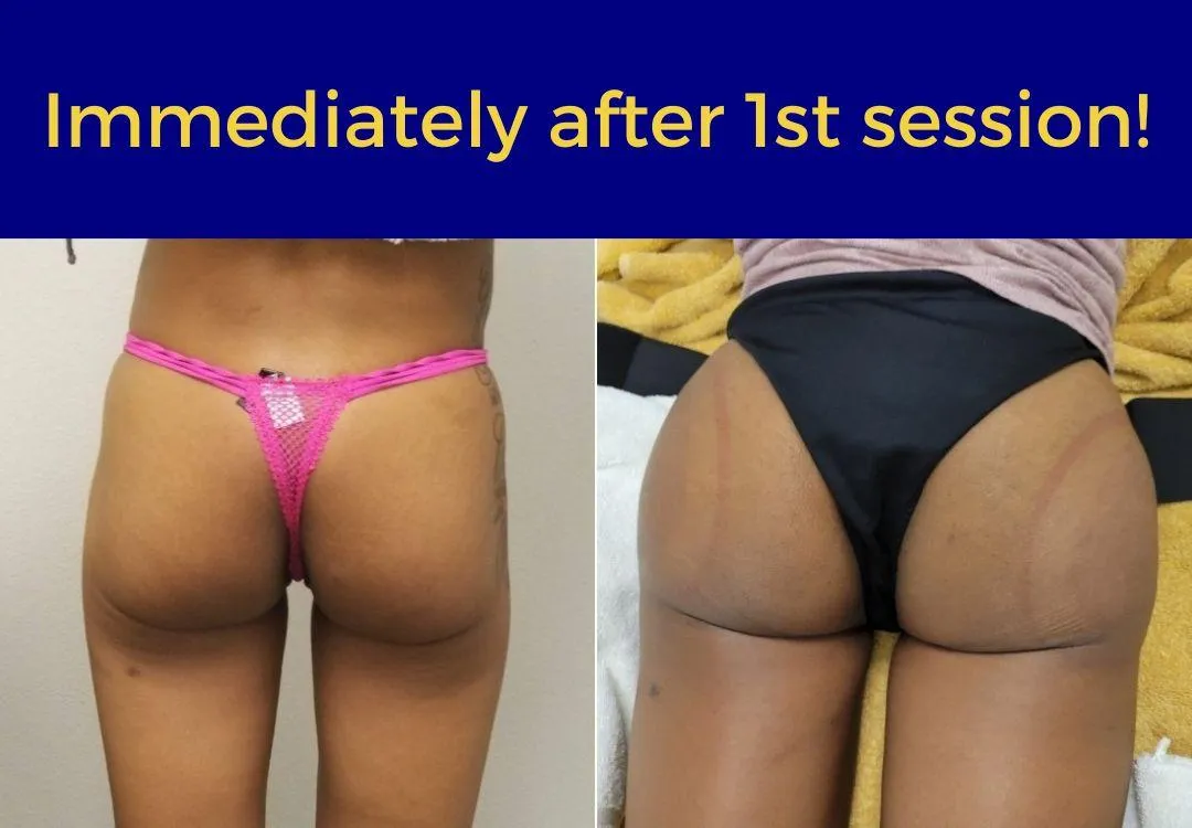 We focus on your natural glutes by building the muscle first and then shaping it using vacuum therapy. This method is safe and has zero downtime, no needles, no freezing, and no surgery required to get amazing results.